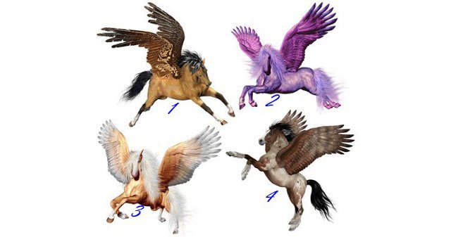 Az alábbi képen négy Pegazust látsz. Melyik a legszimpatikusabb? Melyik áll a szívedhez legközelebb? Gondold végig (érezd)....